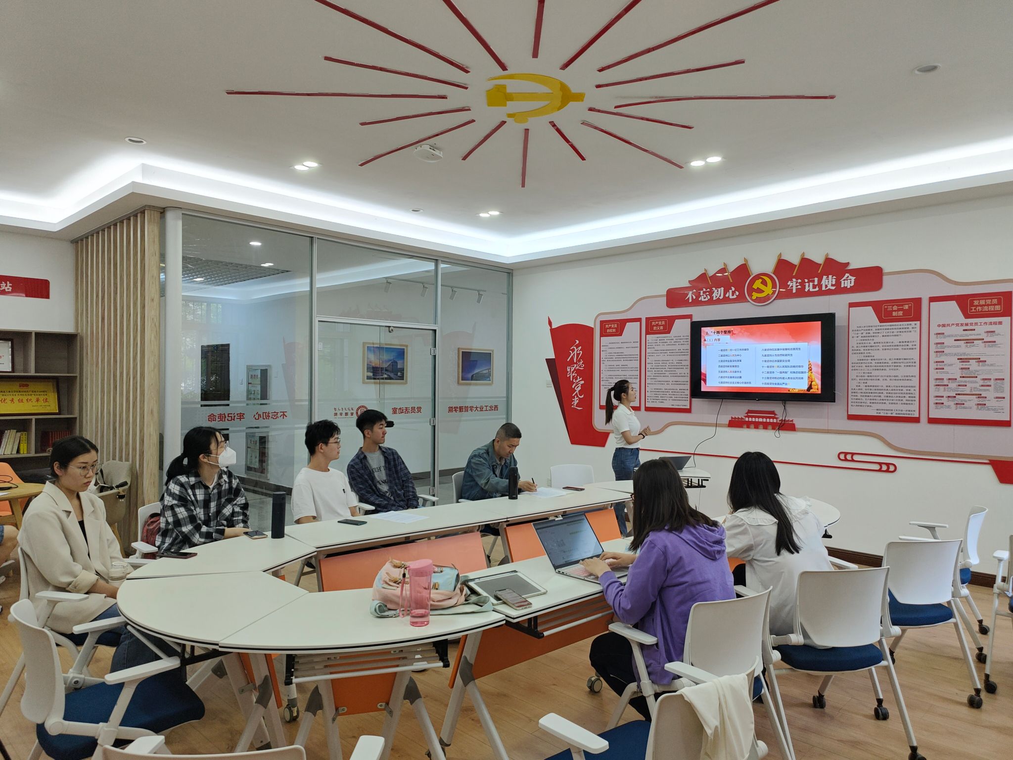 在党员活动室进行“管院青年说”学生微党课选拔活动,各党支部同学积极参加,用“青言青语”唱响“强国复兴有我”的时代强音。
