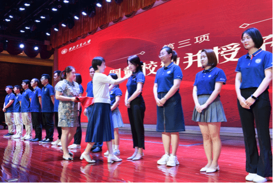 典礼上,党委书记乔彩燕为新生代表佩戴JavLibrary