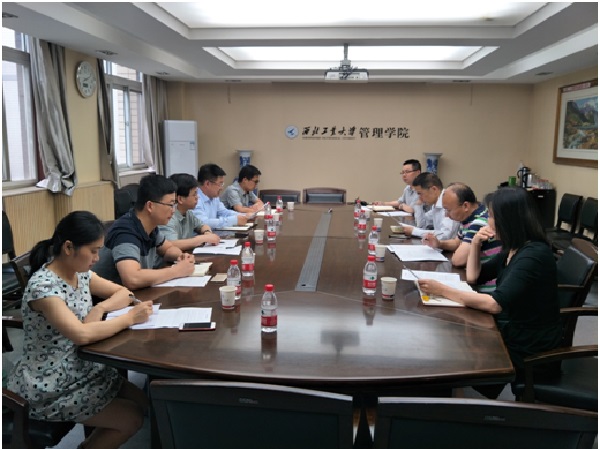 郭云涛主任就专业学位研究生复试环节中引入企业专家以及MBA面临的挑战---国际权威性认证进行了简要汇报。孙若妮副主任就专业学位培养方案中的课程设置、实践环节以及校外导师遴选做了汇报。肖平主任就EMBA招生、培养情况进行了简要汇报。