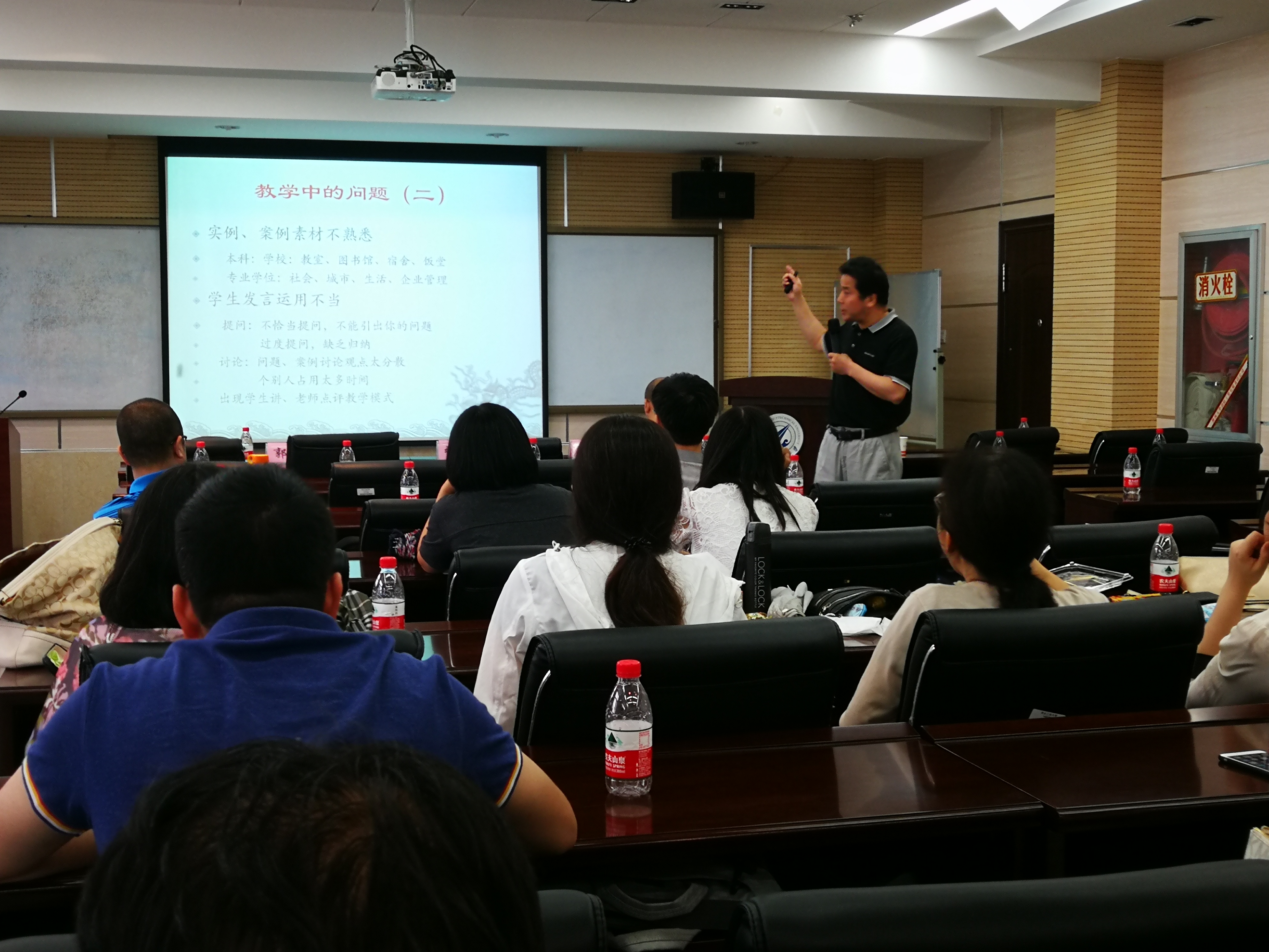 专业学位督导组组长郭鹏教授就2017-2018学年MBA/MEM教学过程、论文指导过程所出现的典型问题做了总结和分析。郭鹏教授结合自己在督导工作中发现的典型事例和自身授课体验,从老师在课堂上的站位、沟通方式与方法、课堂内容组织与管理等等细节切入,和与会老师一起探讨了授课的技巧和艺术。并以2017-2018学年评审未通过的MBA/MEM学生论文为题材,分析了问题论文产生的原因以及导师在论文指导过程中应抓住的关键环节,使与会的导师们尤其是年轻导师受益匪浅。