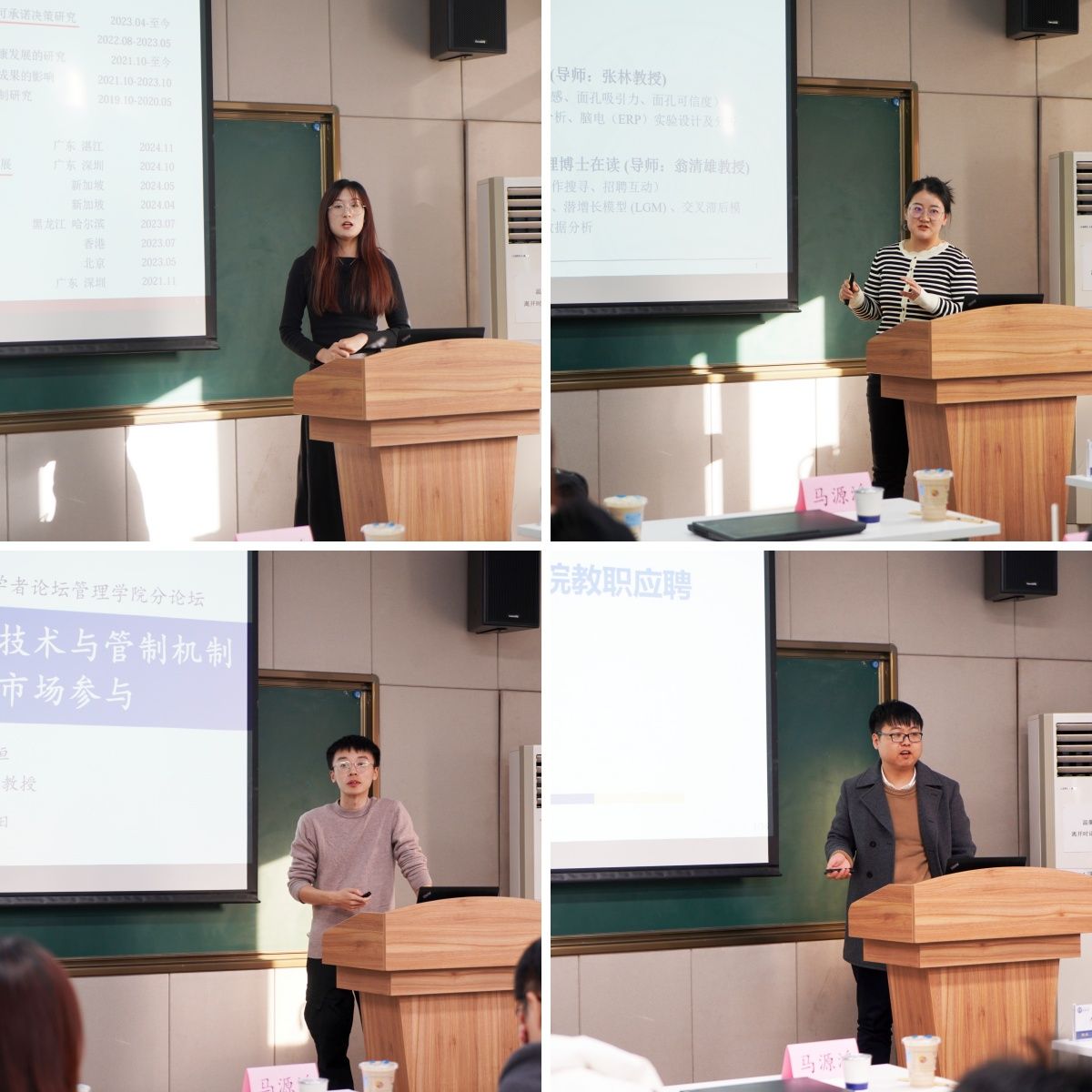 在学术分享环节,来自哈尔滨工业大学的胡瑾瑾、中国科学技术大学的王秀娟、天津大学的时永恒和中南大学的李卓,从教育科研经历、核心研究工作及未来研究计划等方面进行交流分享。与会师生和参会青年学者围绕研究范式、写作技巧等科研工作中遇到的问题展开深入讨论,现场氛围热烈。