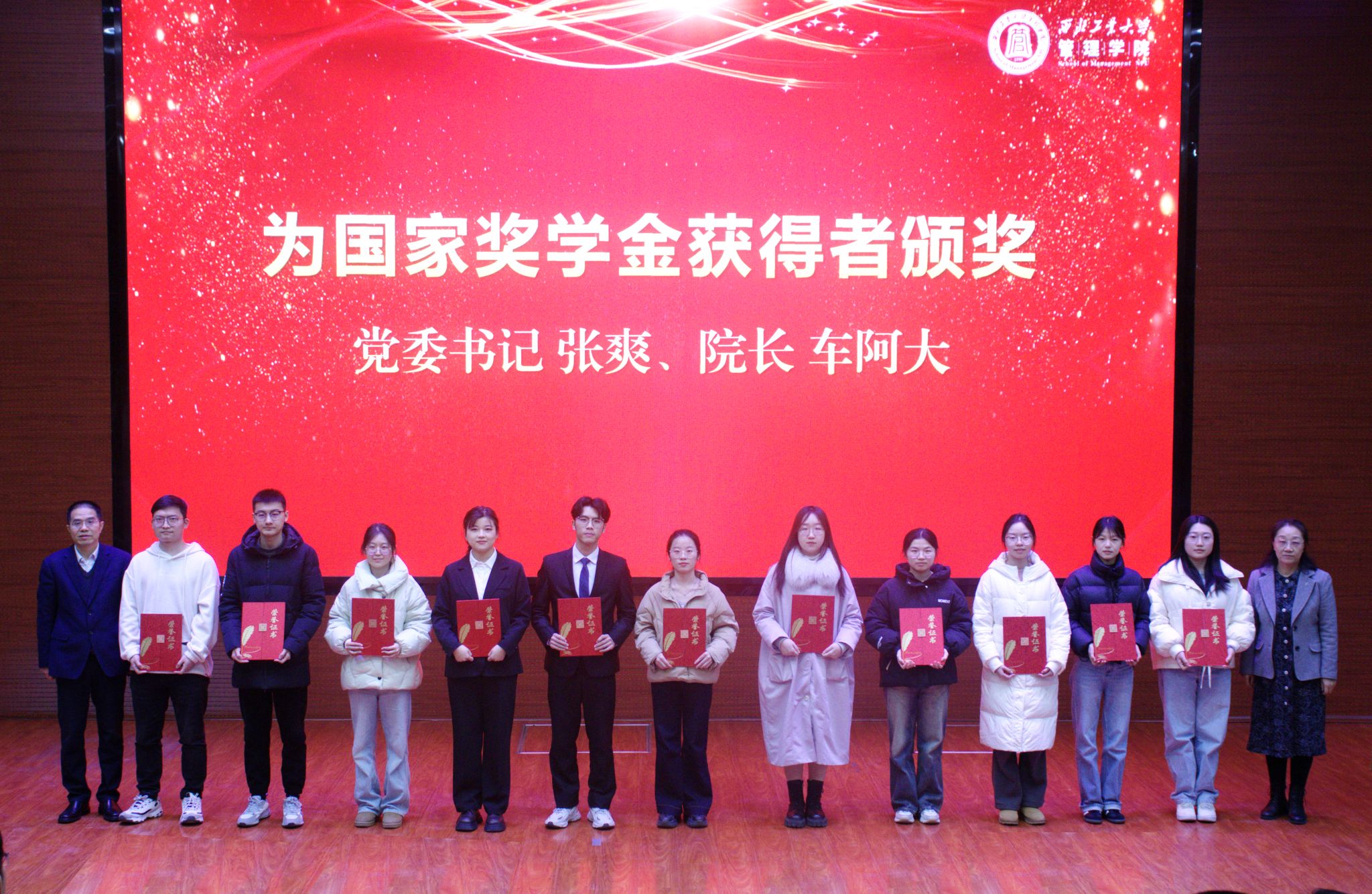 张爽、车阿大共同为国家奖学金获得者颁奖