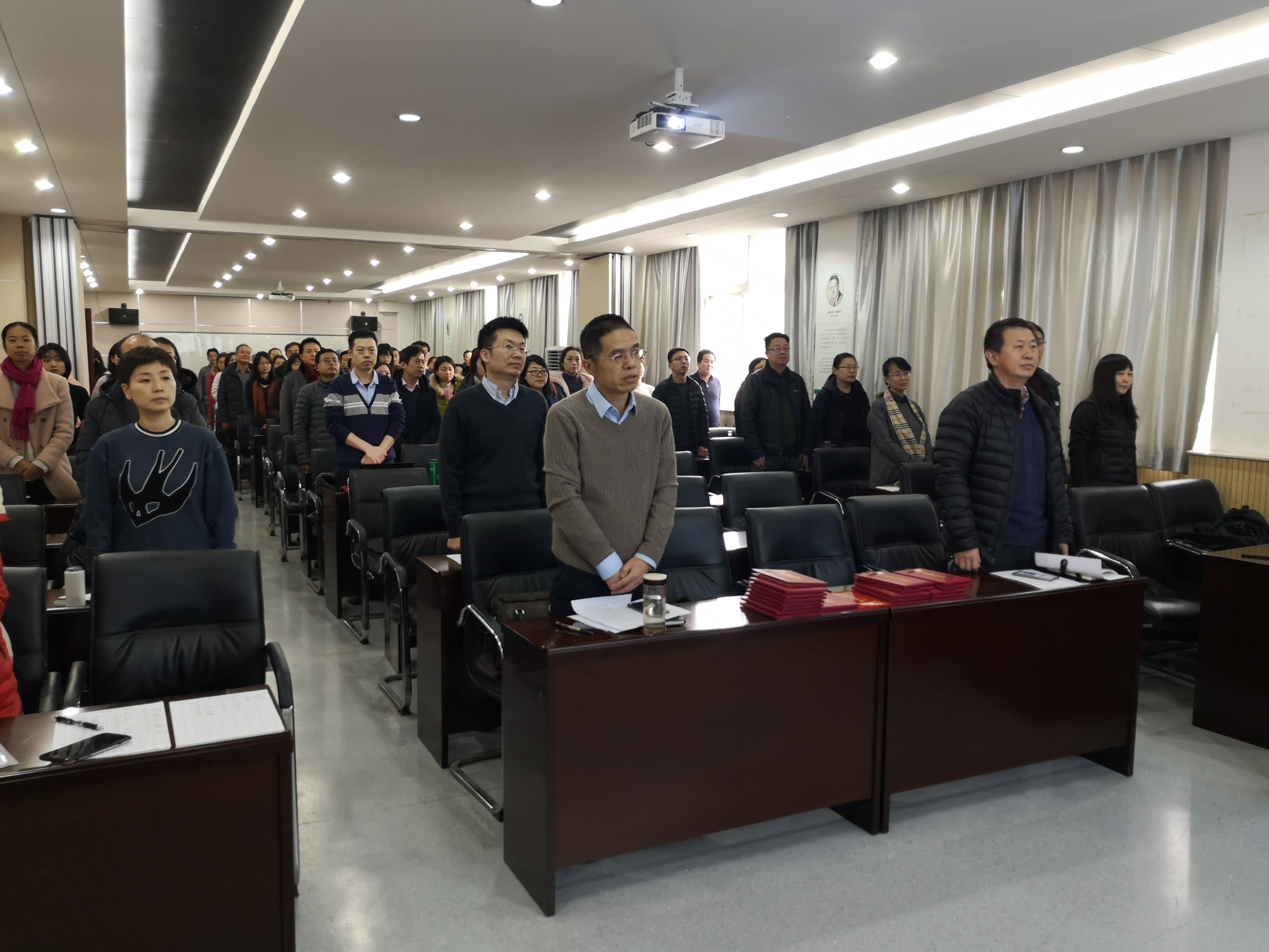 全体教职工在来临的春节,阖家幸福,身体健康,万事如意。会议在庄严的校歌声中圆满结束。