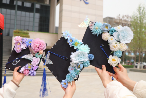毕业帽DIY活动中,同学们带着对未来的憧憬与对过往的留恋,开启了一场充满创意与情感的DIY之旅。活动现场提供了丰富多样的手工材料:五彩缤纷的仿真花朵,每一朵都似在诉说着青春的故事,为学士帽添上一抹自然的灵动与浪漫;圆润莹亮的珍珠,散发着柔和的光泽,把过往岁月的珍贵与美好镶嵌其中;栩栩如生的蝴蝶装饰,仿佛带着破茧成蝶的勇气与新生,轻轻点缀,为创作带来盎然生机。此外,还有同学自带特色材料,定制属于自己的专属毕业帽。同学们热情高涨,纷纷化身为才华横溢的设计师。