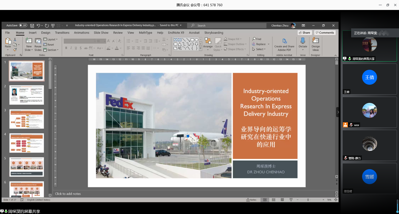 情况和参会学者作了简要介绍。两位青年学者分别就《业界导向的运筹学研究在快递行业中的应用》、《能够提供多种运输方式的城市物流优化模型和算法》等主题做了精彩的报告并和与会人员进行了互动交流。