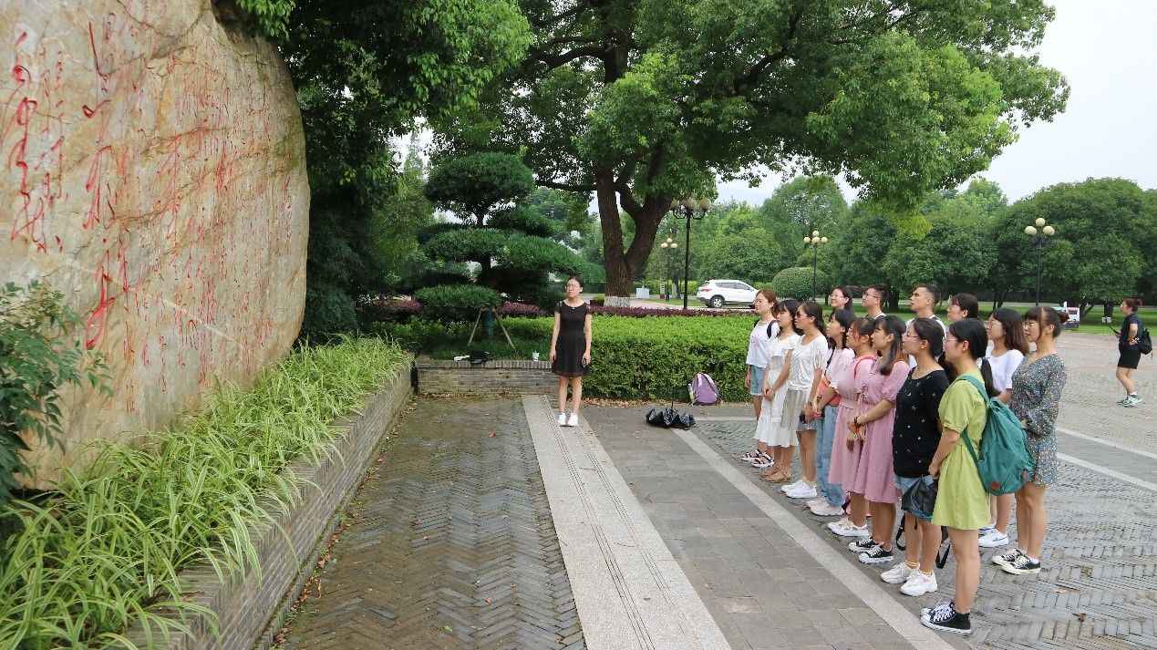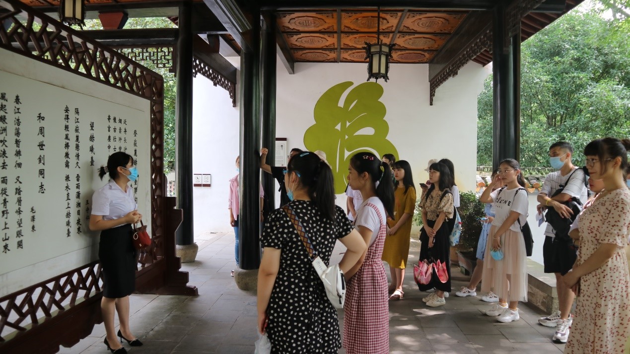 旧址,又名毛泽东与第一师范纪念馆,前身是南宋理学家张栻创办的城南书院,享有“千年学府,百年师范”的美誉。这里群星灿烂,名人辈出:毛泽东、何叔衡、任弼时、蔡和森、杨昌济等都在此学习和工作。一代伟人毛泽东在此求学、工作达八个春秋,并在此从事中国共产党的创建等一系列革命活动,实现了由青年学生到职业革命家的转变、由激进的民主主义者到伟大的马克思主义者的转变。由于疫情原因,该处暂未对外开放,但是实践队员们提前学习搜集了相关历史资料,大家一起学习了毛泽东在此的求学岁月:“要做人民的先生,先做人民的学生”,在这里,他结识了蔡和森等一众好友,也是在这里他们接受了世界最先进的思想,并树立了拯救中国,改变世界的远大志向,激励同学们要珍惜青春时代,树立远大志向。