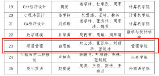 的学分认定课程,面向全校本科生在春、秋学期开放选课。线上教学占70%,侧重项目管理基本理论与方法的学习;线下教学占30%,突出项目管理实践案例的应用和开放式研讨,受到广大学生的欢迎。