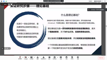 师生做题为“CSMAR与实证研究”的报告。报告分为线上线下同步进行,本场报告线上线下总计有100余位师生参加。