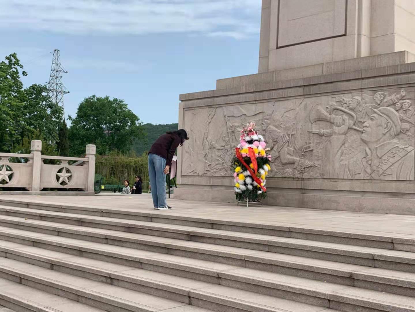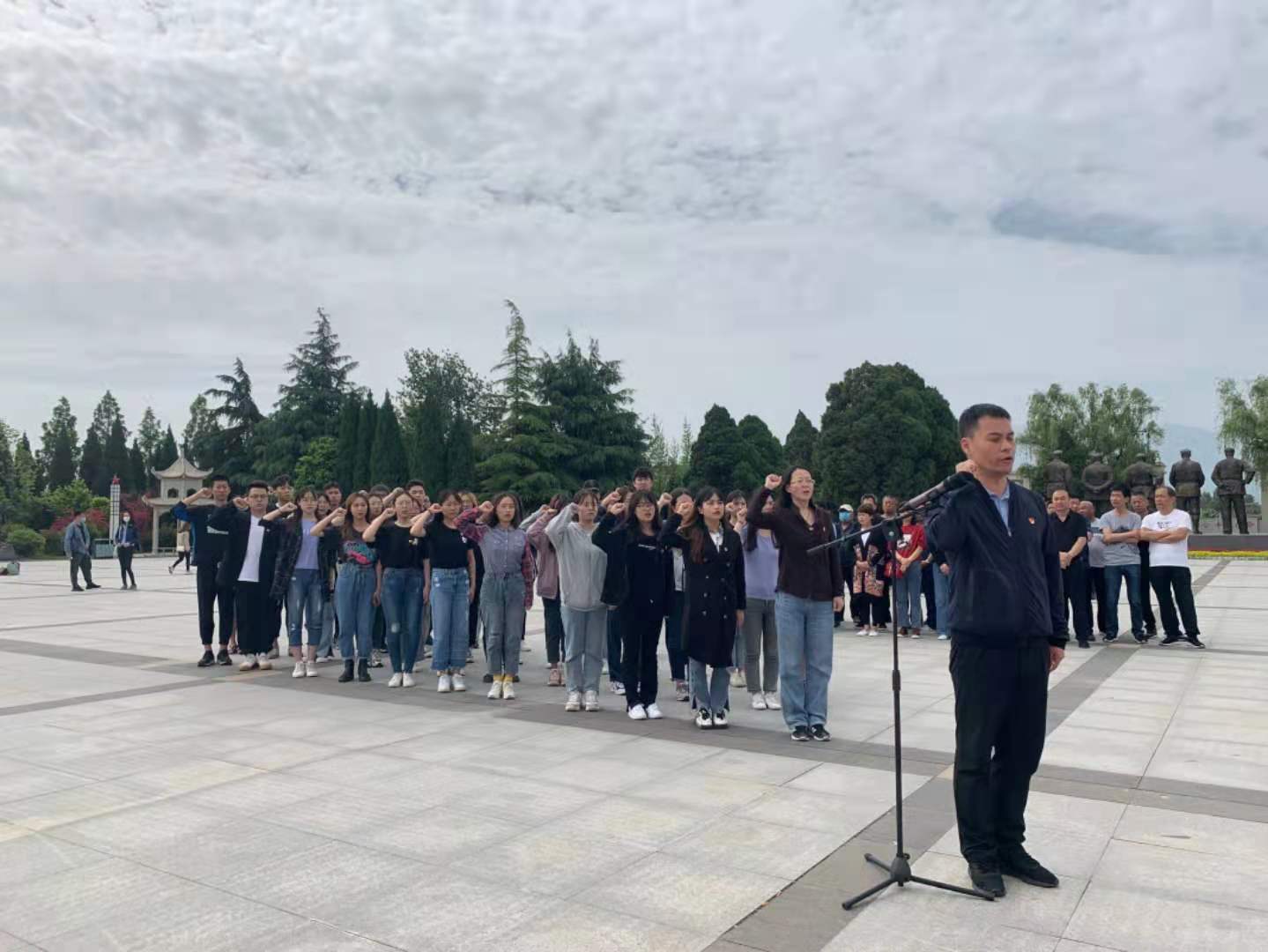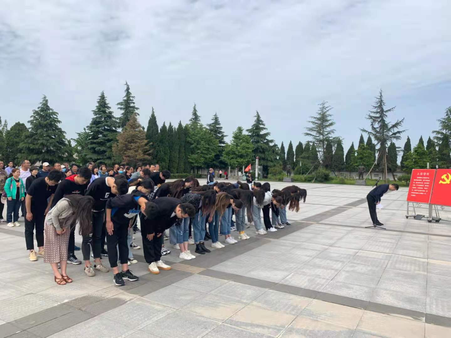 向扶眉战役烈士敬献花篮,随之全体师生向烈士们鞠躬致敬,随后,樊琳带领全体党员同志面向党旗重温入党誓词。最后,由全体师生合唱歌曲《没有共产党就没有新中国》。