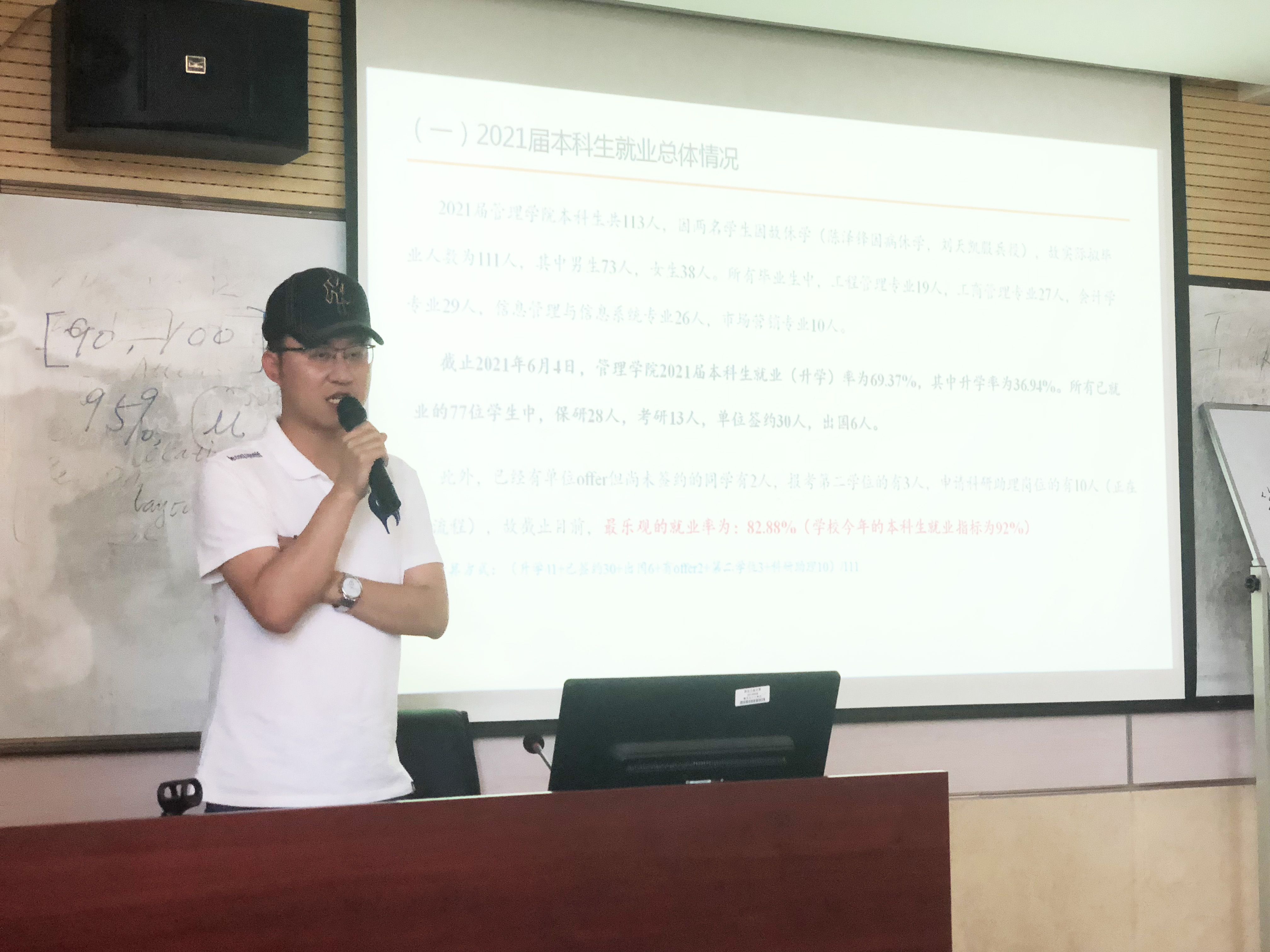 之后2021届班主任就进一步扎实地推进学生毕业就业工作,通过各班具体情况进行发言讨论,同时介绍了班级一些现存问题。