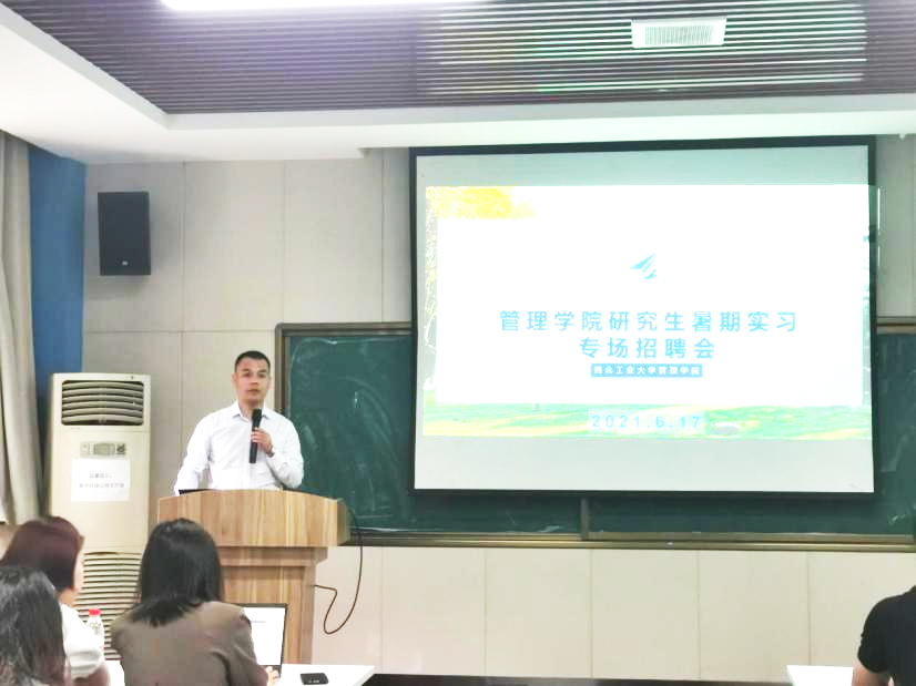 党委副书记樊琳主持,研究生辅导员吴蓓与40余位同学参与了本次暑期实习专场招聘会。