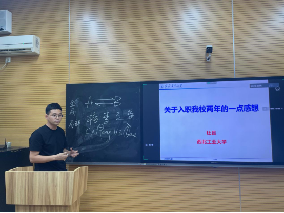 杜昆助理就入校几年来自己的工作情况和心得体会进行了分享。杜昆助理首先回顾了自己入职西工大以来所取得的成果和遇到的问题进行了经验总结分享,他还特别提到在动能JavLibrary