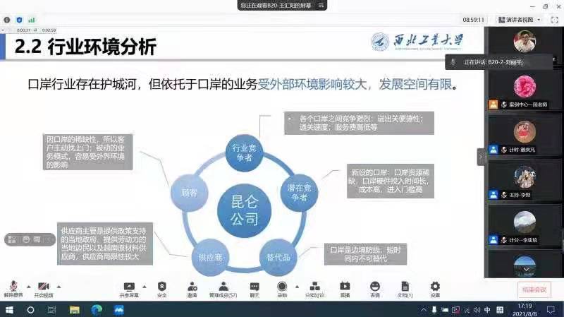 此次案例入学教育分为两个批次进行,每个批次共40支队伍参加,每个批次第一周下发比赛案例,经过为期一周的紧张准备,队员们进行两两对抗的案例比赛。第一批次的MBA新生以《广西昆仑公司:创业机会的辨识与开发》为比赛案例,第二批次MEM和MPAcc新生以《“一体两翼”:海尔集团的多品牌定位之道》为比赛案例。在指导教师的指导下,队员们充分开展头脑风暴,深挖团队集体智慧。正常工作之余,队员们挑灯夜战、争分夺秒,科学运用战略、营销、创业、财务等管理理论以及PEST、SWOT、STP、五力模型等管理分析工具,广泛收集资料,对案例企业进行深入研究,在分析案例企业过去成长的基础上,归集存在的问题,挖掘内在成因,提出有效可行的解决方案和保障措施。在线上比赛中,团队分工明确、配合默契,队员们各抒己见、妙语连珠、你来我往、火花四溅,问答环节团队双方有的放矢、一语破的,呈现了精彩的巅峰对决。评委老师针对各队参赛情况和队员场上表现进行针对性提问和点评,使得比赛精彩不断,呈现出较高的专业水准。
