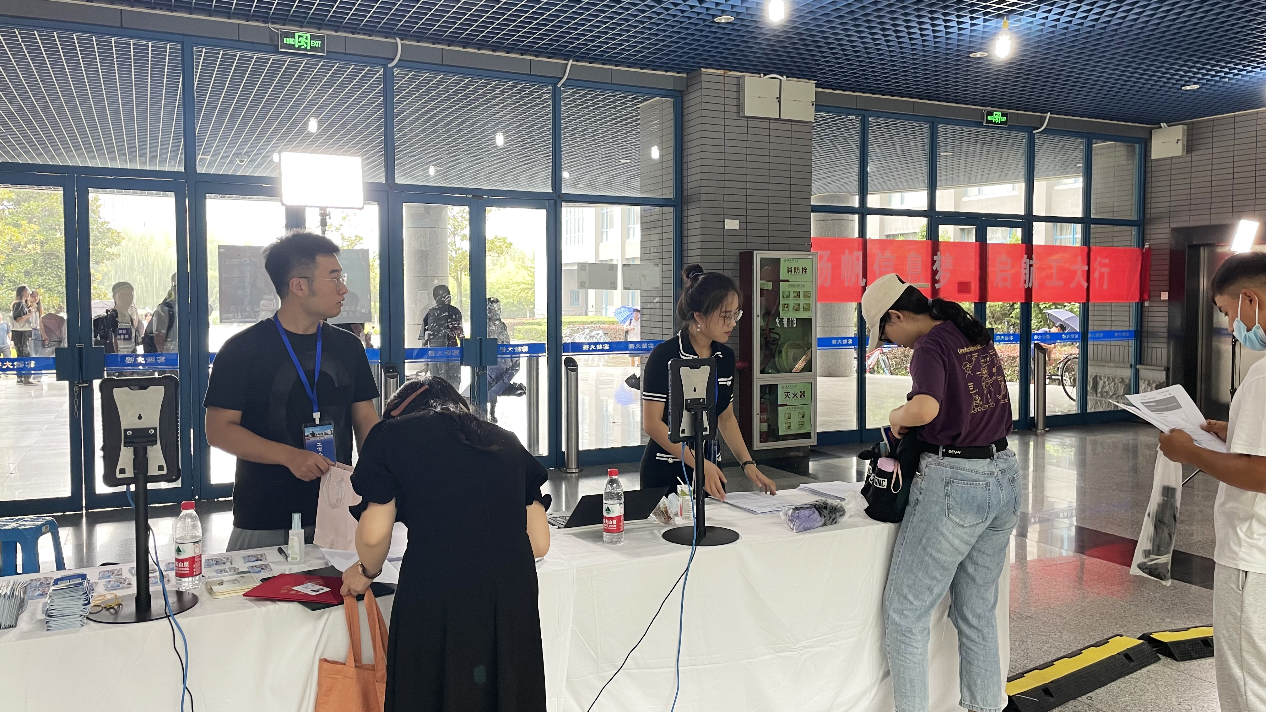 院领导一行走进新生宿舍,送上真诚欢迎,递上亲和问候,给新生一份安心和踏实。在报到现场的每一处,都详细询问、了解新生报到工作的情况,并向工作人员和志愿者们提出做好服务的要求,表达真诚的感谢。