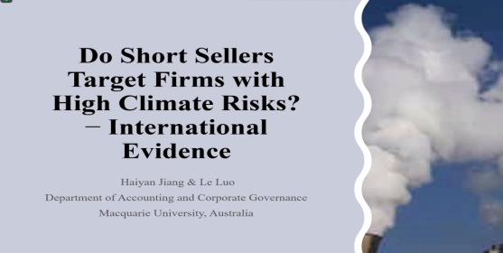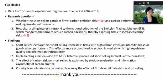 2021年7月23日上午10:00,新西兰麦考瑞大学Haiyan Jiang副教授通过ZOOM平台做了题为“Do short sellers target firms with high climates risks?-international evidence”的讲座。本次讲座由苏坤教授主持,JavLibrary