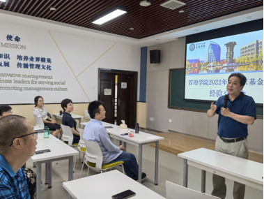 蔡建峰教授分享了国家社会科学基金的申报经验。从如何围绕自己的研究基础进行选题、选题的注意事项、活页的撰写方法及各部分的内容比例安排、研究现状及内容的撰写等方面进行了分享。