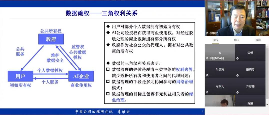 副院长田高良教授主持。南开大学讲席教授、中国公司治理研究院院长李维安教授报告的题目为“数字治理与AI企业治理”,在分析“管理滞后于技术、治理滞后于管理”这一瓶颈现象基础上,阐述了企业数字治理理论和AI企业治理体系的构建及其关键问题。中国人民大学商JavLibrary