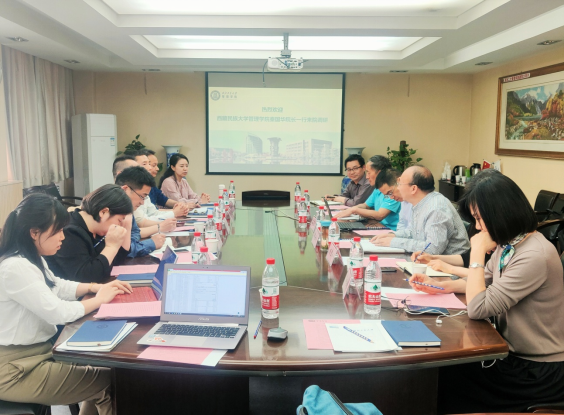发展概况、学科建设和专业设置、教育科研、师资队伍建设、国际合作以及人才培养等进行了介绍。郭云涛副院长简要介绍了专业学位架构及各专业情况,杨宏玲主任就MBA/MEM两个专业的招生、学生活动、产教融合及评估等方面的经验和做法进行了分享。