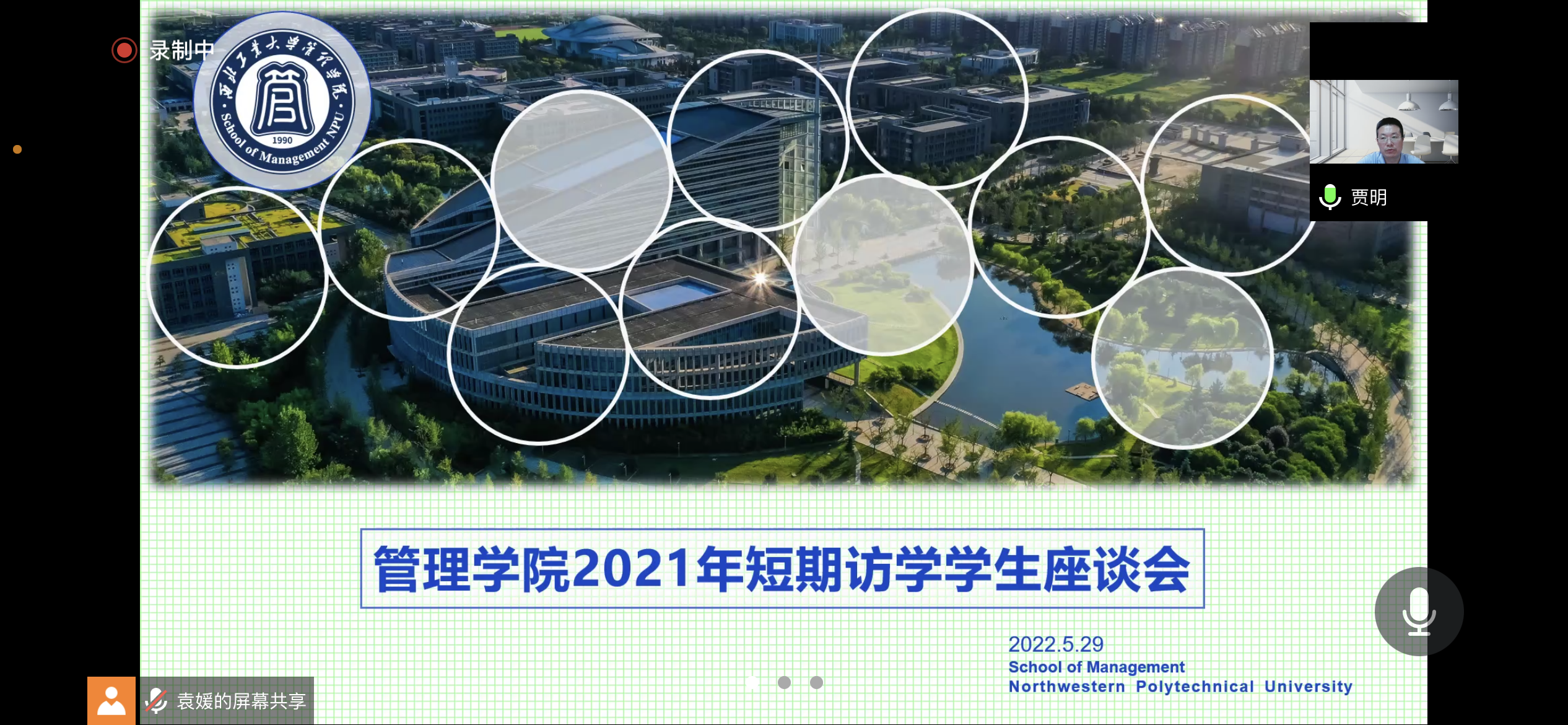 副院长贾明、党委副书记王兆旭、院长助理邵婧、研究生教学秘书陈斐然、研究生辅导员袁媛及全体2021年国际联合培养派出博士研究生参与了座谈会,座谈会由贾明教授主持。
