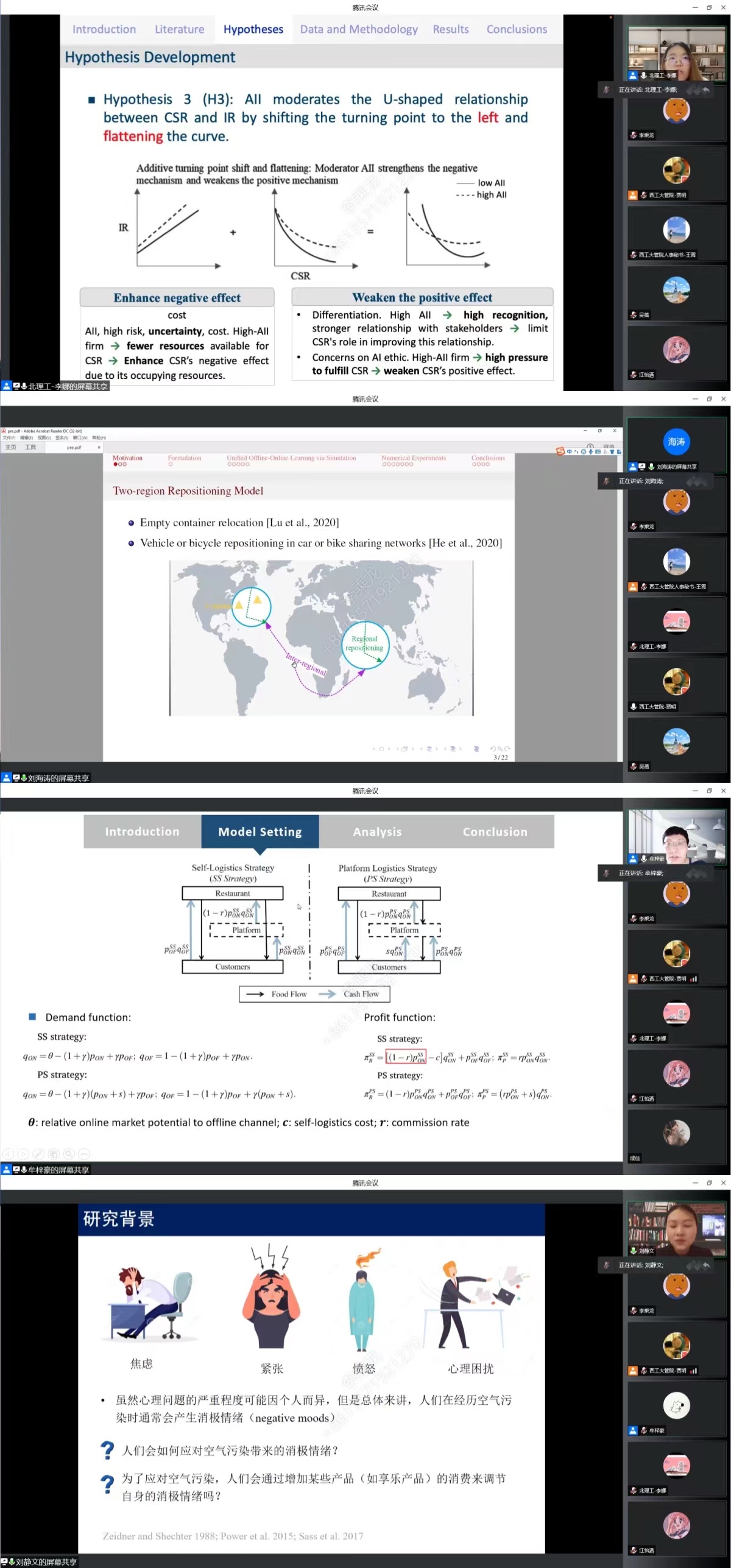 论坛以学术分享会开场,贾明首先对青年学者到来表达了诚挚欢迎,并分别对此次分论坛情况和四位学者作了简要介绍。受邀来校的北京理工大学李娜博士、新加坡国立大学刘海涛博士、哈尔滨工业大学刘静文博士和华南理工大学牟梓豪博士四位青年学者分别就企业履行社会责任是否会降低特质风险及运营效率与人工智能创新的作用、空气污染对享乐消费的影响——以电影行业的实证和实验研究为例、线下线上仿真的实时决策以及餐饮商家和外卖平台的配送合作模式研究展开了精彩的分享,并和与会的师生们展开了热烈的研讨。JavLibrary