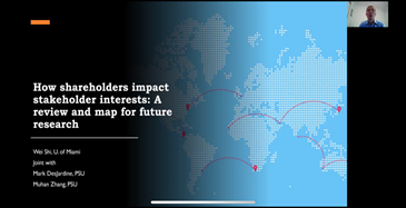 (University of Miami,Miami Herbert Business School)的Prof. Wei Shi回顾了股东如何影响利益相关者利益方面的研究,并进一步提出可以探索的研究方向。