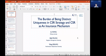 (SMU,Lee Kong Chian School of Business)的Prof. Heli Wang分享了企业社会责任战略的独特性在其作为保险作用方面的最新研究。