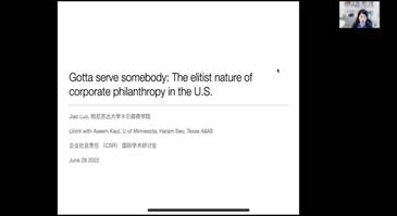 (University of Minnesota,Carlson School of Management)的Prof. Jiao Luo从企业慈善活动的社会影响方面切入,提炼最新的研究思路。