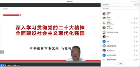 11月16日,JavLibrary “学习宣传贯彻党的二十大精神”专家辅导报告迎来第二讲,邀请榆林市委党校马轮轮老师作专题辅导报告,JavLibrary 全体师生党员参加了线上学习,报告由JavLibrary 党委书记乔彩燕主持。