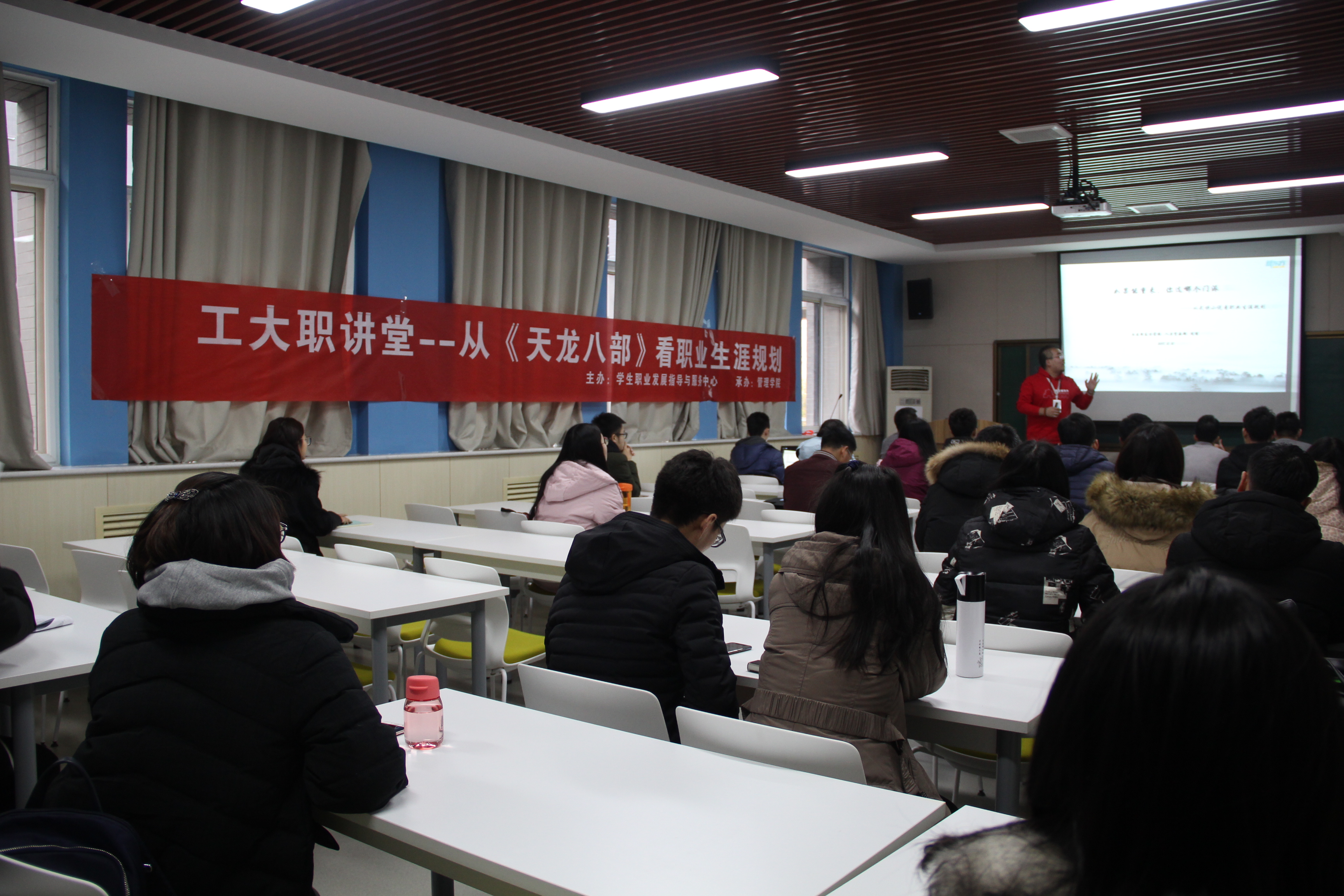 学生带来了《从< 天龙八部>看职业生涯规划》主题报告会。本次“工大职讲堂”是由JavLibrary