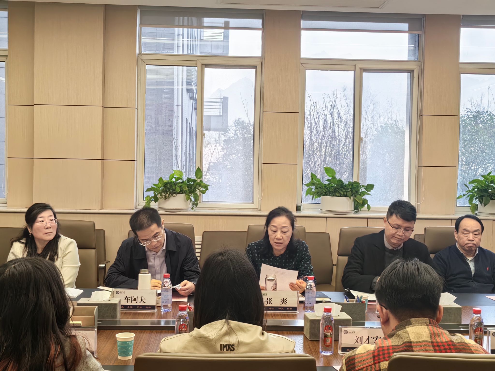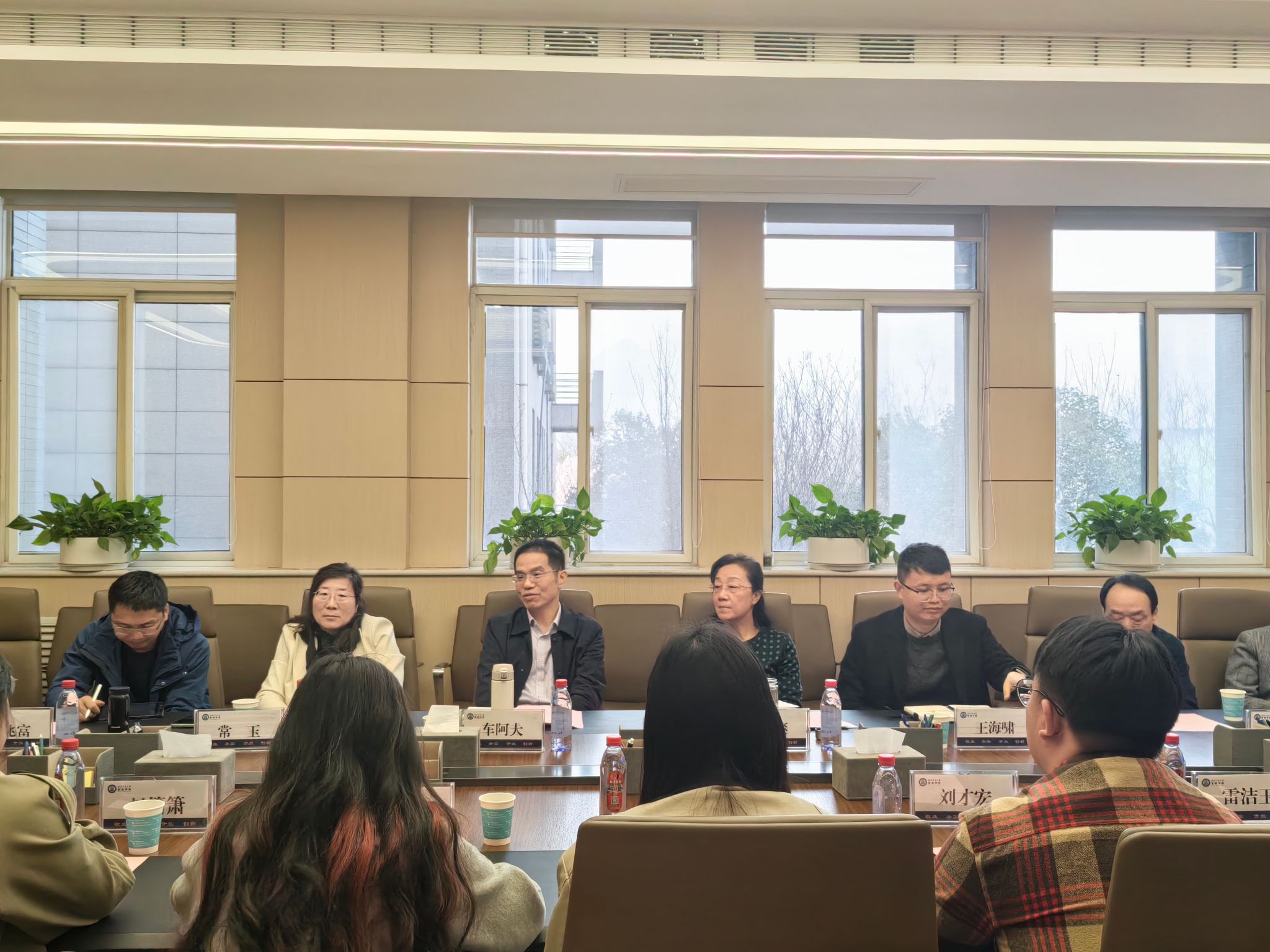 院长车阿大、党委书记张爽、党委副书记王海啸,各系系主任张亚莉、薛建武、洪兆富、常玉,研究生辅导员龚汨嘉、袁媛、巩雪,研究生教学秘书牛佳乐,以及10名研究生代表齐聚一堂,以座谈会见证成长与收获。会议由党委副书记王海啸主持。
