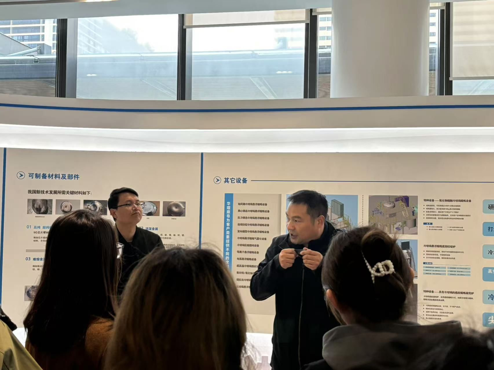 在金湾科创区“三项改革”清控服务展厅,吕冰玉总监向同学们系统介绍了来自清华大学、陕西科技大学、陕西师范大学等高校以及20余家园区高科技企业的科研成果转化情况。冯建波副总经理通过实物展品和视频,向同学们展示了企业攻克的悬浮熔炼、冷坩埚感应熔炼等全球领先的成果,并热情欢迎感兴趣的同学参与科技成果转化。