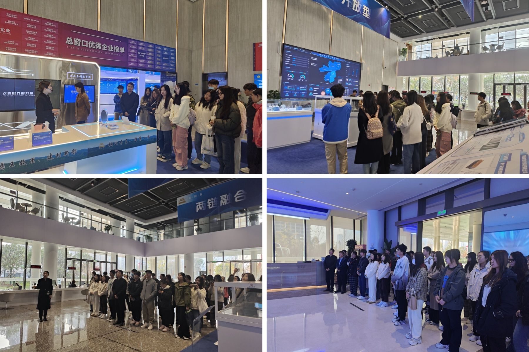 在秦创原资本大市场展厅,工作人员系统介绍了秦创原发展股份有限公司的发展历程、金融服务等,特别是“线上+线下”一站式全周期金融服务平台,帮助同学们了解了科技成果转化的全流程以及蕴含其中的管理智慧。同学们还参观了企业路演大厅,观看了秦创原平台成功孵化、服务的科技创新企业及其代表性产品,了解了资本要素与创新资源对接、科研成果转化方面的内容,直观感受了创业企业的经营管理活动。