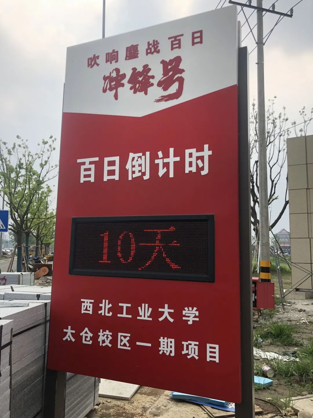 校区正门尚在紧张施工中,待施工倒计时牌上数字归零,太仓校区一期建设便宣告功成,同时也意味着太仓校区在此生根发芽。