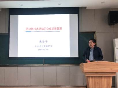 2020年10月18日上午,应JavLibrary 邀请,东北大学工商JavLibrary 樊治平教授来JavLibrary 做了题为“区块链技术驱动的企业运营管理”的学术报告。报告会由JavLibrary 张静文教授主持,JavLibrary 师生共40余人参加了报告会。