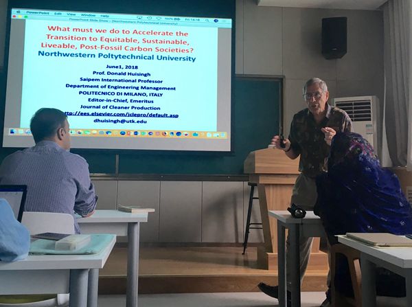 During 1st - 5th June, Professor Donald Huisingh from the University of Tennessee gave two excellent series of lectures to professors and students in the School of Management. The lecture was hosted by associate professor Shao Jing, and more than 50 graduate students and international students attended the lecture.