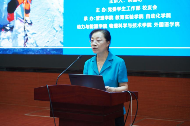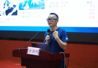 座谈会结束后,全校400余名师生齐聚长安校区教学西楼D100报告厅,共同聆听余国明《攀登珠峰 超越自我》主题报告