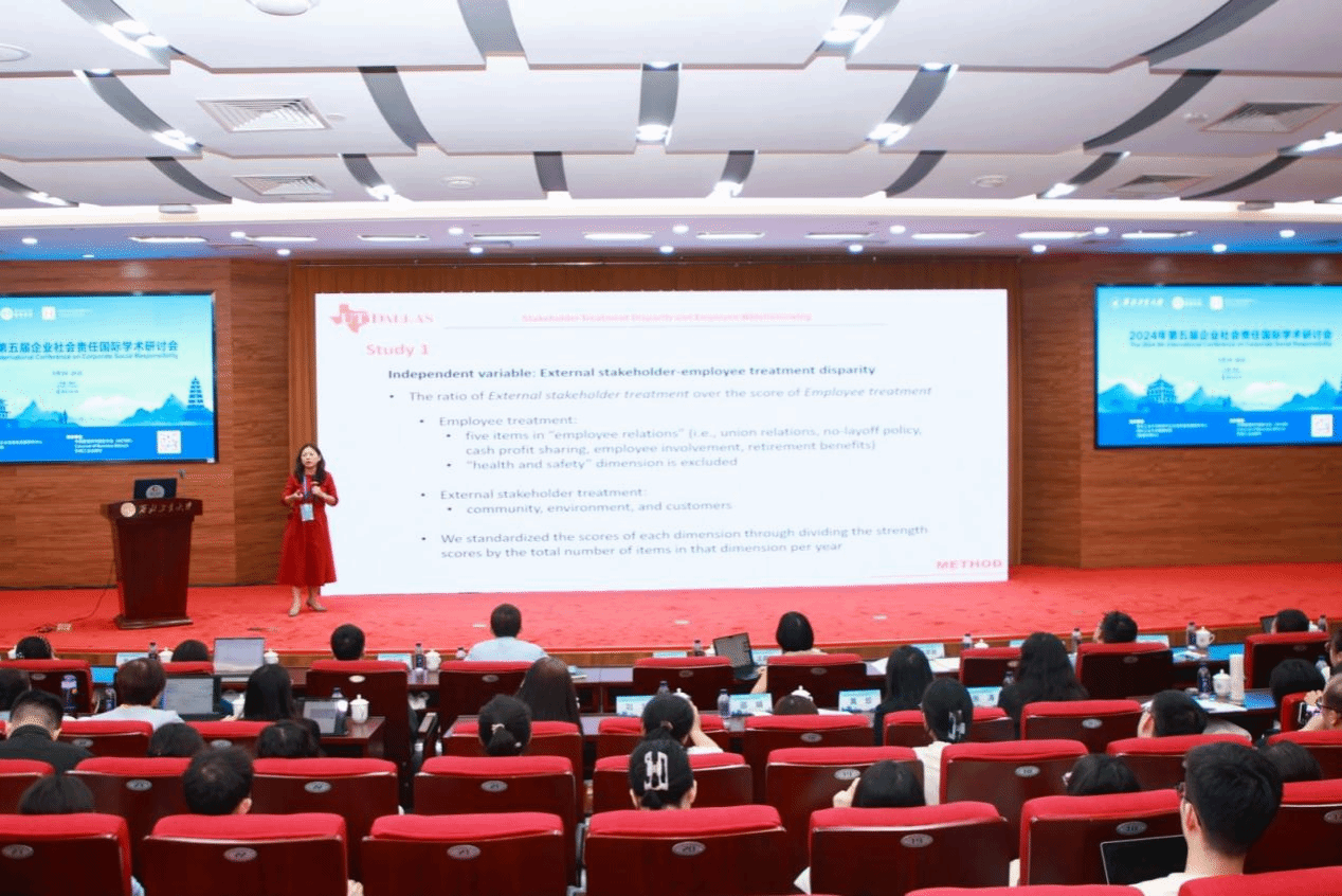 的Prof. Heli Wang分享了题为《The Spillover Effect of Mandatory CSR Regulations on Corporate Social Irresponsibility》的研究。来自德克萨斯大学达拉斯分校的Prof. Cuili Qian分享了题为《Stakeholder Treatment Disparity and Employee Whistleblowing: A Multi-Stakeholder Framework》的研究。