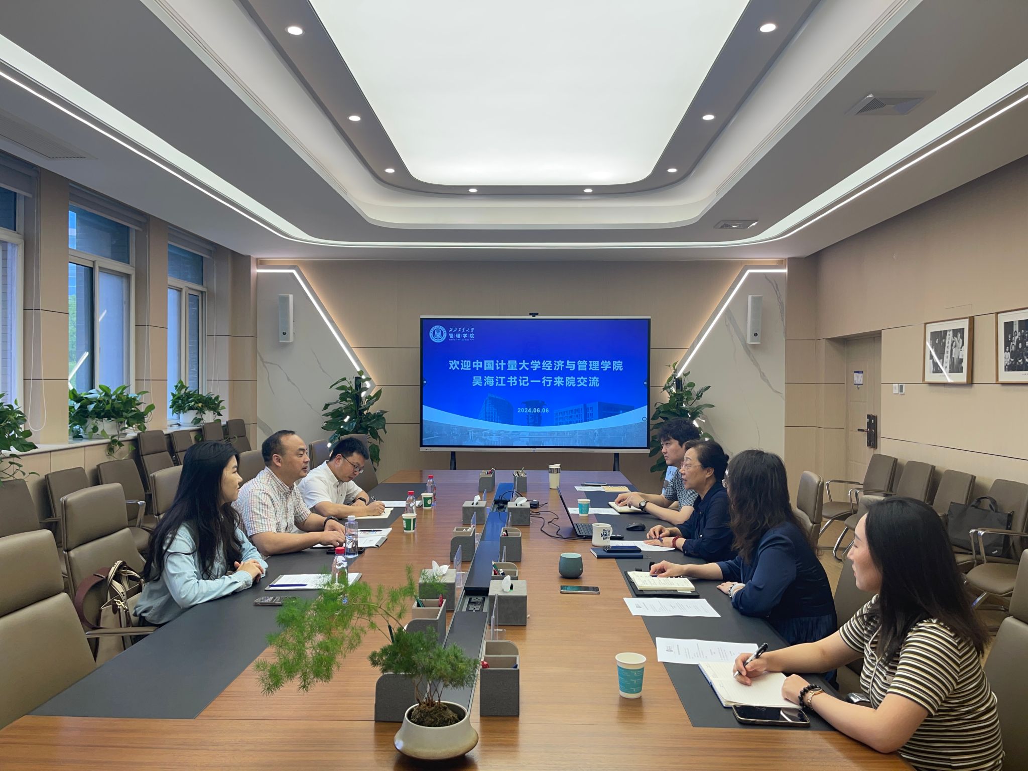 6月6日上午,中国计量大学经济与JavLibrary 党委书记吴海江一行来院调研,双方在长安校区JavLibrary 212会议室进行座谈。党委书记张爽、院长助理白洁等相关部门业务负责同志参加会议。