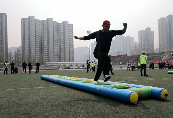 孙朝院长的一声令下运动会正式开赛。本次运动会设“砥砺奋进”、“闪电纵队”、“拔河比赛”三个团体趣味项目。“砥砺奋进”为六人一队,接力进行,赛程30米;“闪电纵队”为五人一队,头部钻入云梯到肩部,协同前进,遇障碍一同仰身通过,折返全程80米。赛场上,学员们奋勇争先,斗志昂扬,完美诠释了“友谊第一、比赛第二”的精神,将趣味的比赛作为集体荣誉的争夺,使得运动会高潮迭起,精彩纷呈;赛场边,加油声不绝于耳,欢呼声此起彼伏,全场热火朝天、妙趣横生。