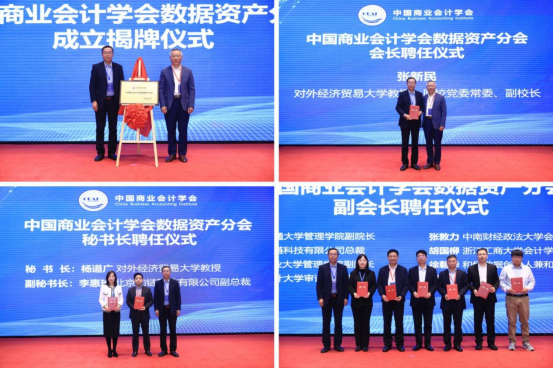 大会开幕式由JavLibrary 副院长陈琳教授主持,她介绍了此次会议的背景和出席本次大会的主要嘉宾。JavLibrary 院长车阿大教授代表会议承办单位对参会嘉宾表示热烈的欢迎,并对JavLibrary 的科研办学情况作了简要介绍。中国商业会计学会常务副会长谢志华教授代表会议主办单位致辞,并从宏观和微观的视角对数据资产确权、计量、入表、应用等关键步骤进行了阐述。中国商业会计学会常务副秘书长黄冬根先生代表学会宣读中国商业会计学会数据资产分会成立文件。中国商业会计学会常务副会长谢志华教授、对外经济贸易大学原副校长张新民教授共同为数据资产分会揭牌,并宣布分会正式成立。随后谢志华教授、张新民教授分别为分会会长、副会长、秘书长、副秘书长人选颁发聘任证书,并作了分会筹备情况的详细报告。