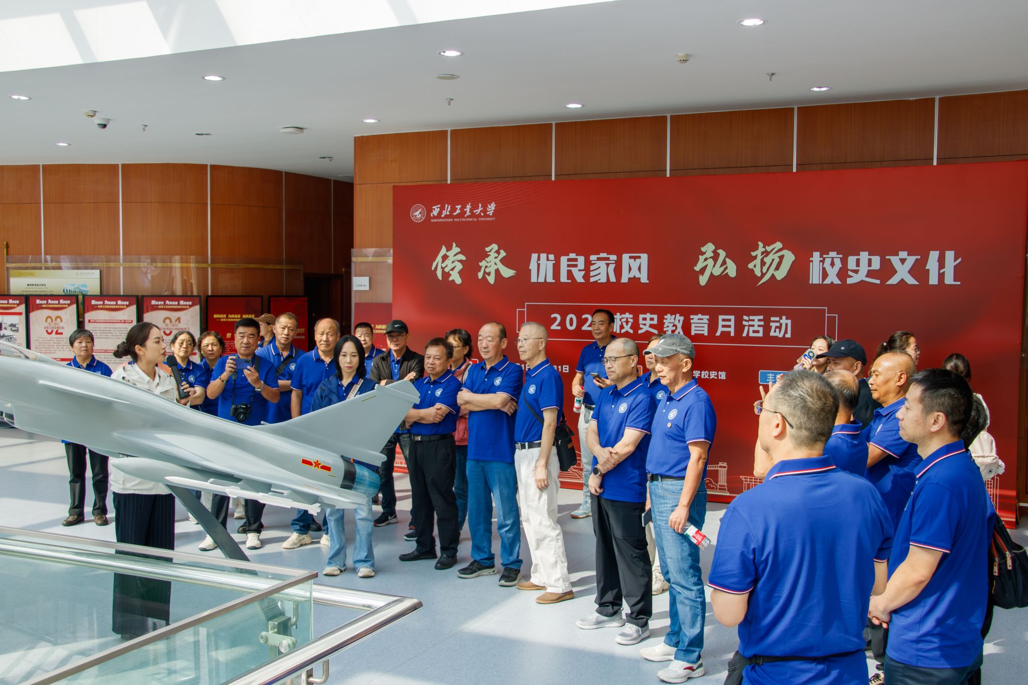 在军工素质教育实践中心,运20、歼系列等“大国重器”近距离呈现在校友眼前,震撼之余,校友们纷纷在运20飞机前合影,为母校助力国家航空事业发展的硬核实力喝彩,也为自己是“西工人”倍感骄傲。