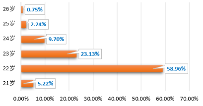 从2022级全日制硕士研究生的年龄分布来看,在千禧年出生的“00后”占比超过半数,TA们今年22岁。此外,年龄最小的新同学21岁,年龄最大的新同学26岁。惊喜的是,出生日期分别为“19990919”、“20000711”、“20000727”、“20000824”、“20001021”和“20001022”的12名新同学可以找到和自己同年同月同日生的TA呢。