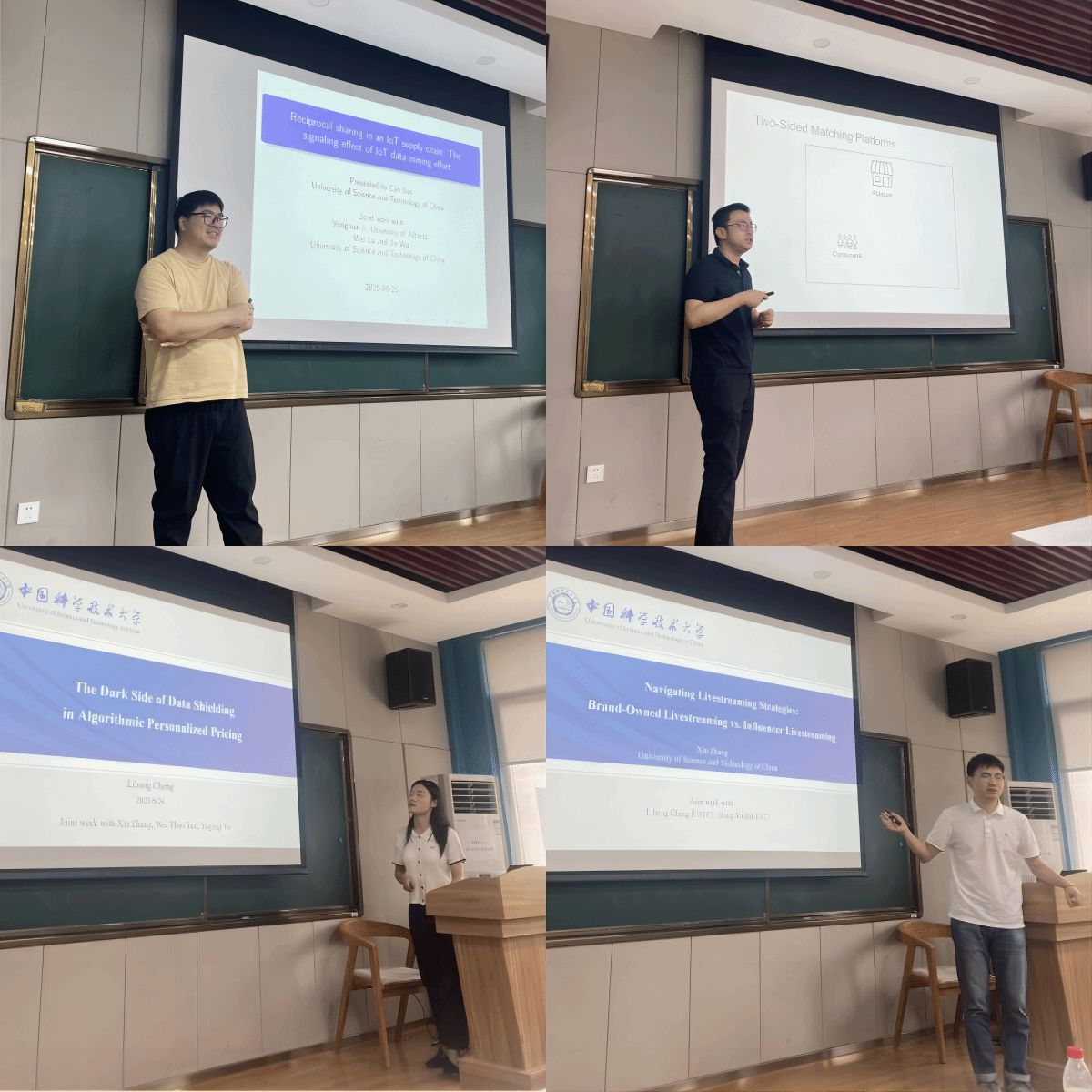 于6月26日上午在长安校区214报告厅成功举办“信息系统经济学系列讲座”。本次讲座汇聚了四位该领域的青年杰出学者,围绕物联网供应链、双边平台匹配、数据隐私保护及直播电商策略等热点方向分享了最新研究成果。王鹏副教授主持了本次学术活动。