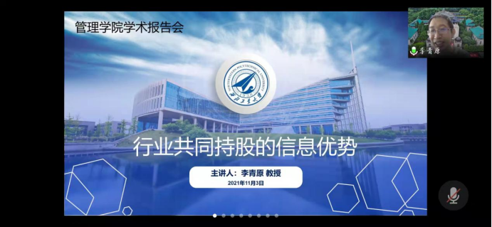 师生作了题为“行业共同持股的信息优势”的线上讲座。讲座由陈琳教授主持。