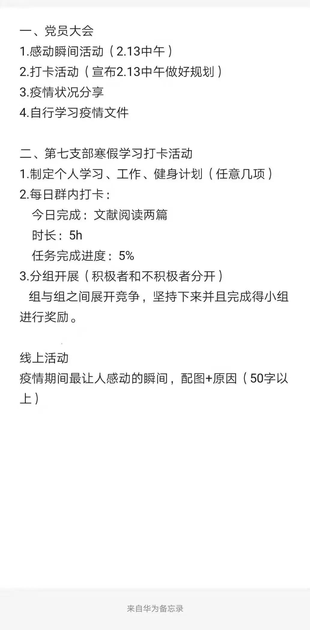 3、线上党课:2020年2月21日上午我们支部开展了线上党课活动,主题是“疫情防控,感动事迹”,主要是选取党员代表围绕疫情期间触动心灵的见闻分享自己的看法。