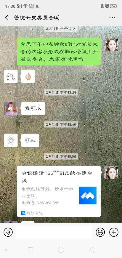 1、线上支委会:我支部于2月11日下午开展线上支委会,主要集中讨论本月线上党员大会的具体形式及内容,同时,针对学生党支部活动的形式和内容各自发表观点和看法。