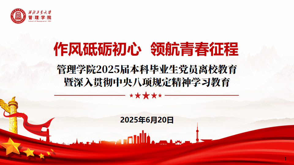 首先,王海啸为毕业生党员讲授题为《作风砥砺初心 铸就青春征程》的毕业教育暨深入贯彻中央八项规定精神学习教育专题党课,系统梳理了中央八项规定的历史脉络与现实意义,引导党员深刻理解其精神内核,希望毕业生党员将廉洁自律内化为行为准则,以清正作风践行初心使命,为营造风清气正的社会环境贡献力量。