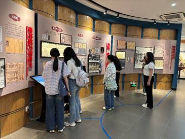活动开场,同学们一同走进西安交通大学兴庆校区博物馆“千年回响——西安交通大学历史文化展”,深入探寻西安交大校址与汉唐长安城的深厚渊源。这场展览宛如一场跨越时空的文明对话,呈现了一场融合历史底蕴与时代精神的文化盛宴,也为两校两院进一步深化文化育人合作、拓展共建交流渠道搭建了平台。