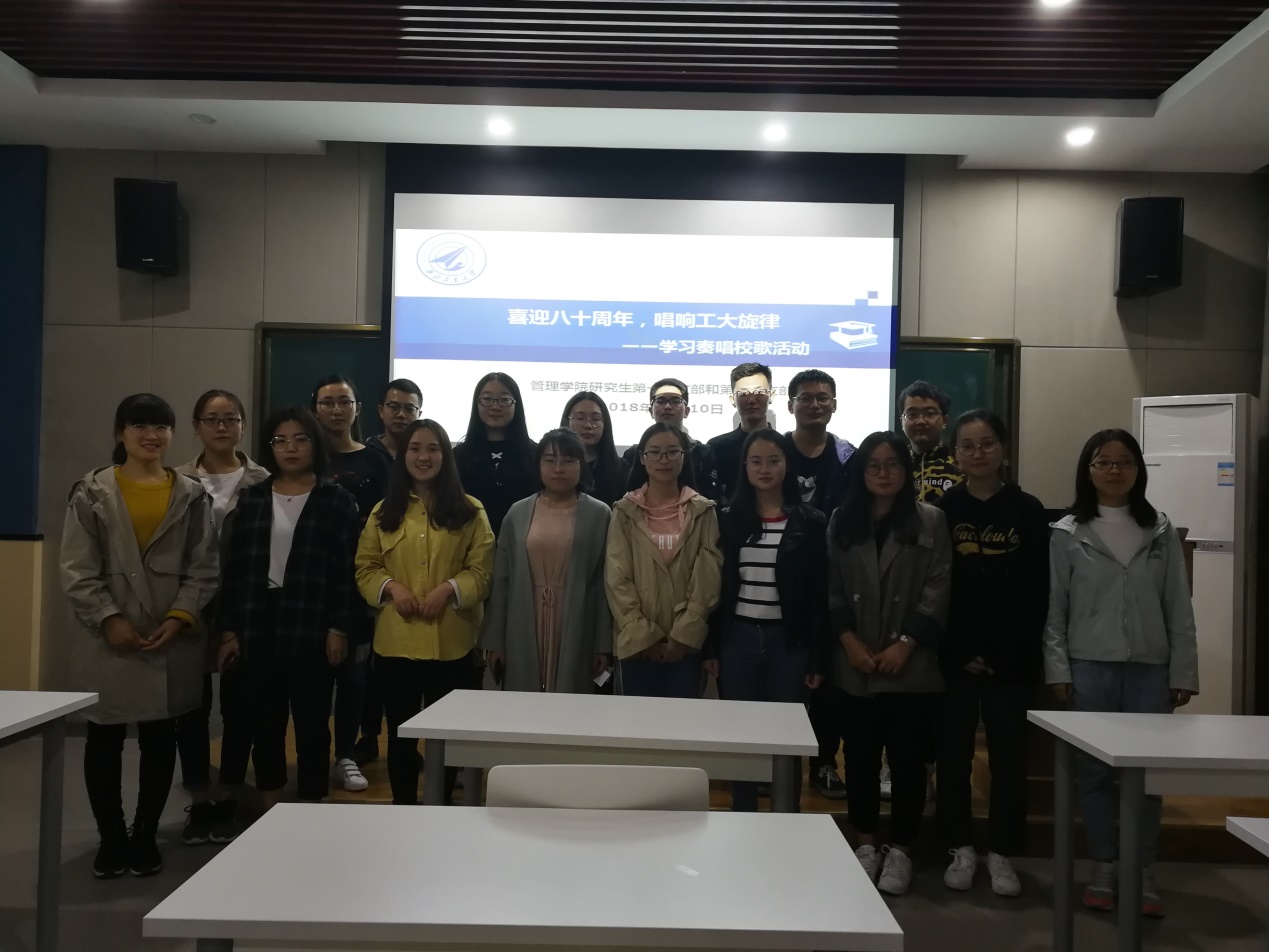 研究生第三党支部书记翁晓敏同志)的现场教学下,大家很快熟悉了校歌的旋律,高昂的歌声响彻整个教室。
