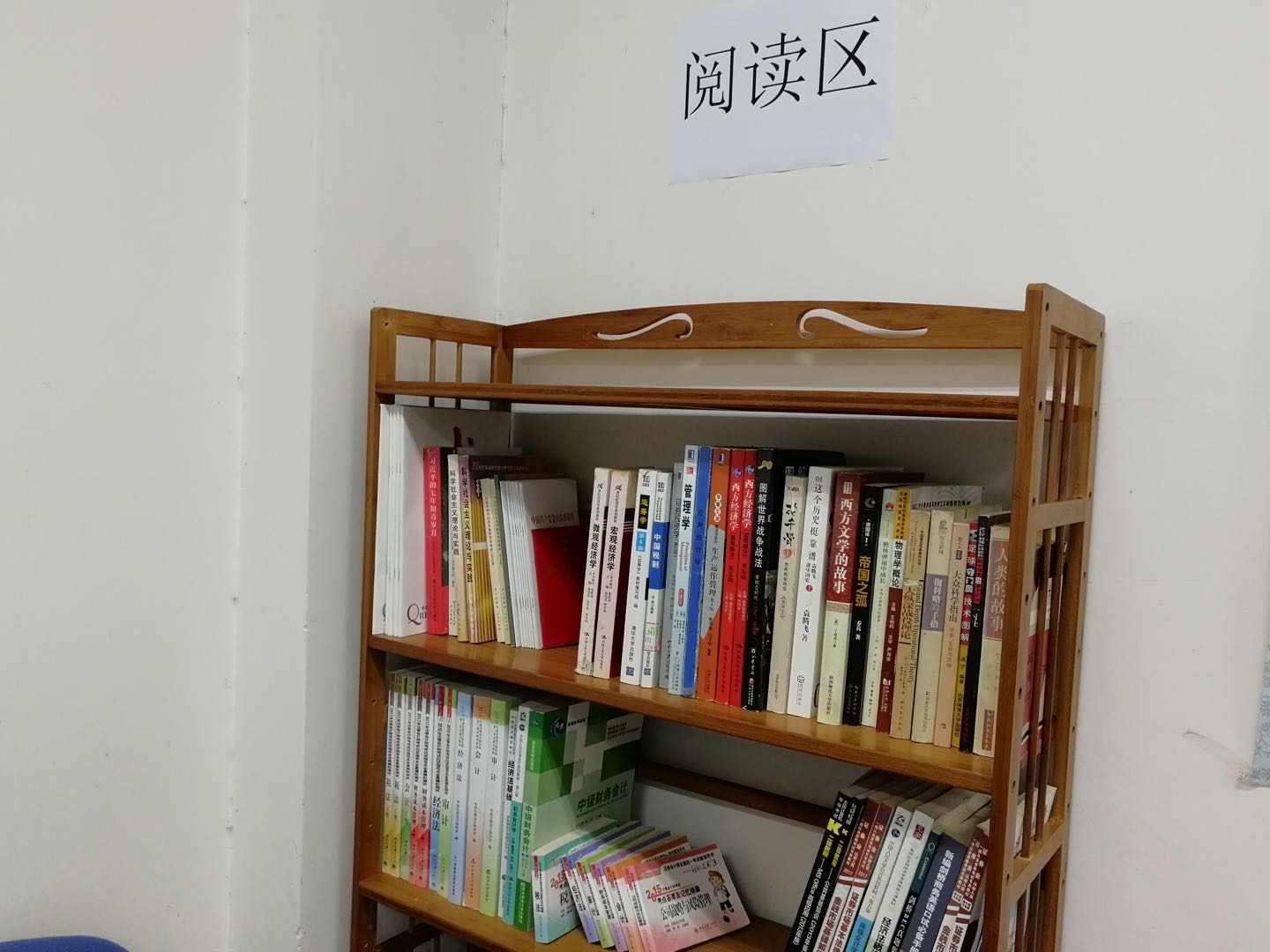 书架安装完成后放到了教研室的西北角,大家把整理好的书籍按照专业和领域一一整齐摆放,其中不仅有学习用书,还有拓展视野的历史书、文学作品等。书籍摆放完毕后,同学们把羽毛球拍放到书架最下面,提醒大家努力学习的时候也要注意锻炼身体。最后,党支部书记姚晨雨提出把党支部和教研室的合照粘贴在书架上面当成装饰和纪念,获得了大家的一致赞成。